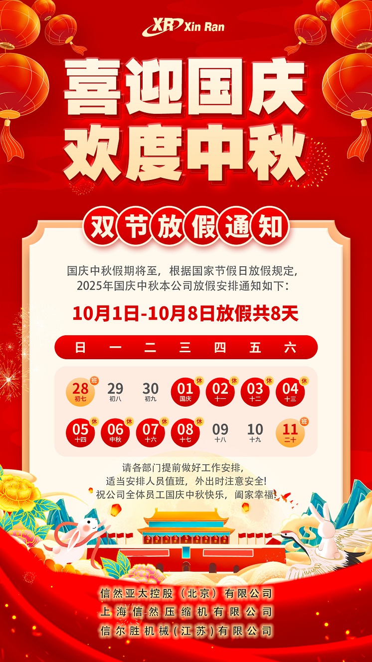 信然压缩机:喜迎国庆 欢度中秋 双节放假通知