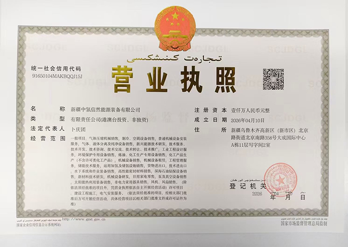 新疆中氢信然能源装备有限公司注册于新疆乌鲁木齐市北京路,是中国氢能集团股份有限公司和上海信然压缩机有限公司共同出资1000万元成立的服务于新疆能源建设和中亚能源项目的大型装备企业。