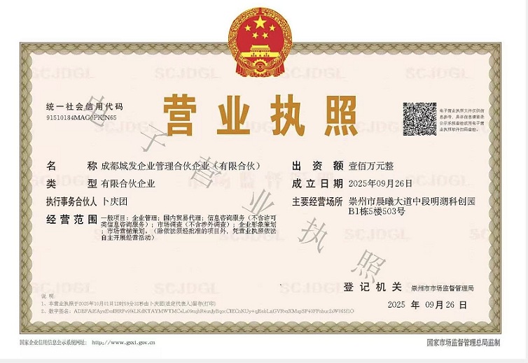 祝贺:成都城发企业管理合伙企业(有限合伙)成立 |