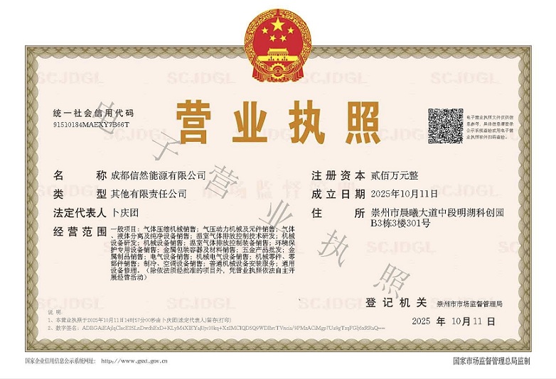 10月11日,成都信然能源有限公司成立!成都信然能源有限公司主要是研发、生产、销售天然气管线压缩机、石油化压缩机、轴流离心式压缩机、磁悬浮冷水机组、磁悬浮热泵、氢气压缩机、碱性/PEM电解槽、中央空调、军工配套设备等产品。
